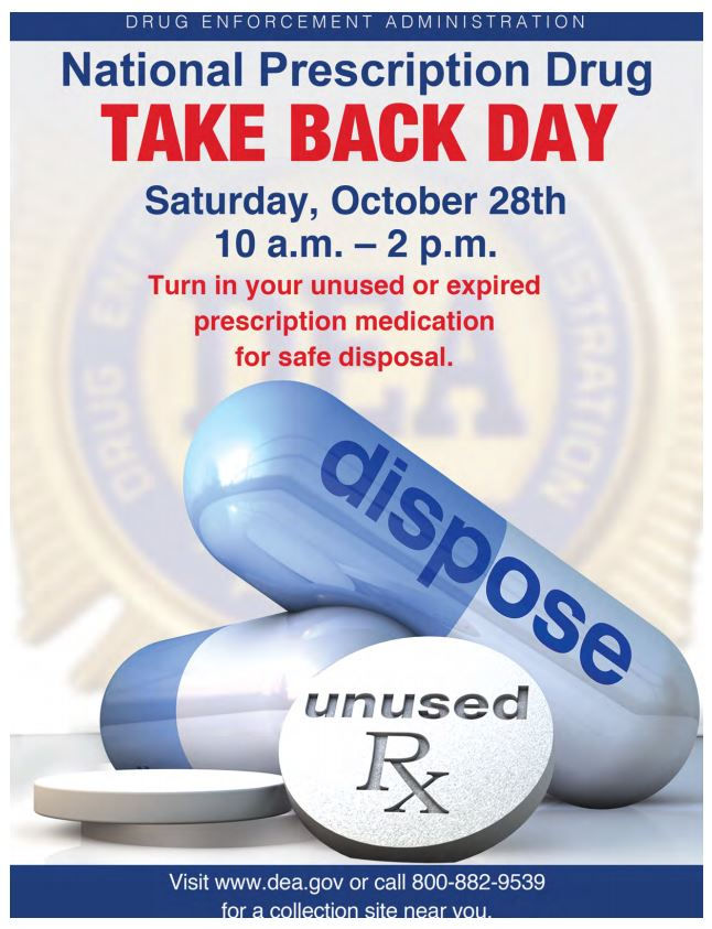 Join us this Saturday, October 28th for National Prescription Drug Take Back Day.