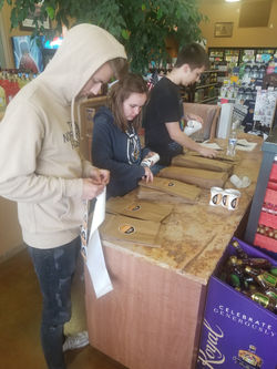 Students involved in Sticker Shock place stickers and bottle hangers on alcoholic beverages that might appeal to underage drinkers with a warning message about the penalties for providing alcohol to anyone under 21.